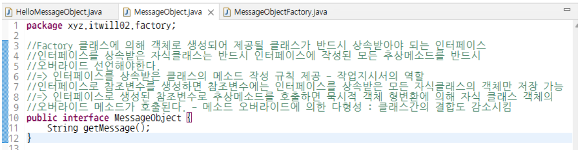 (팩토리 클래스 쓰려면 꼭 인터페이스를 상속받아야 한다.)